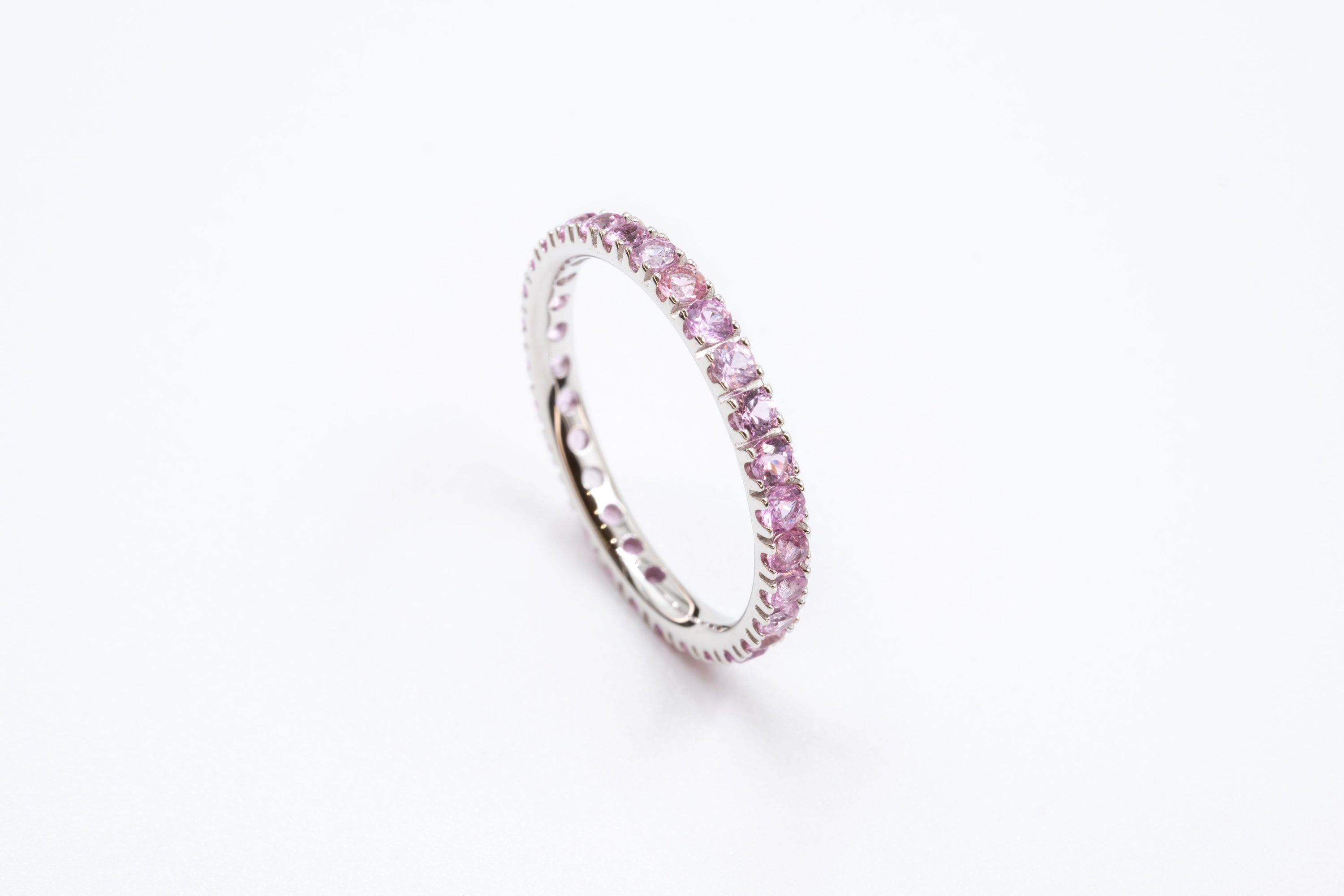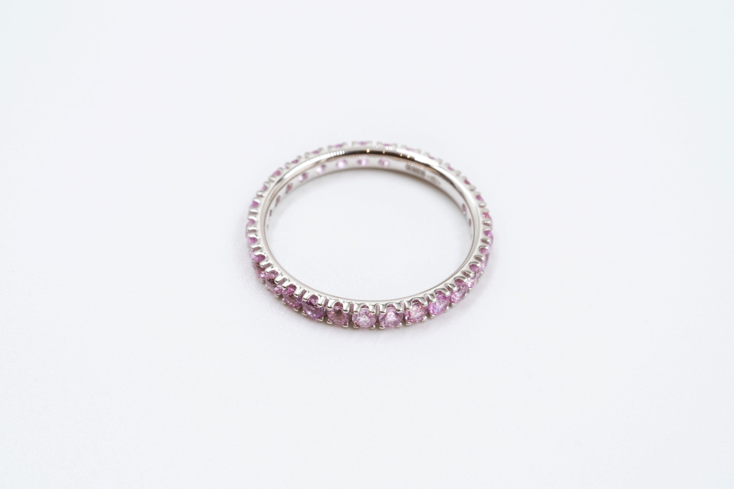 Anello eternity o fedina girodito oro bianco e zaffiri rosa