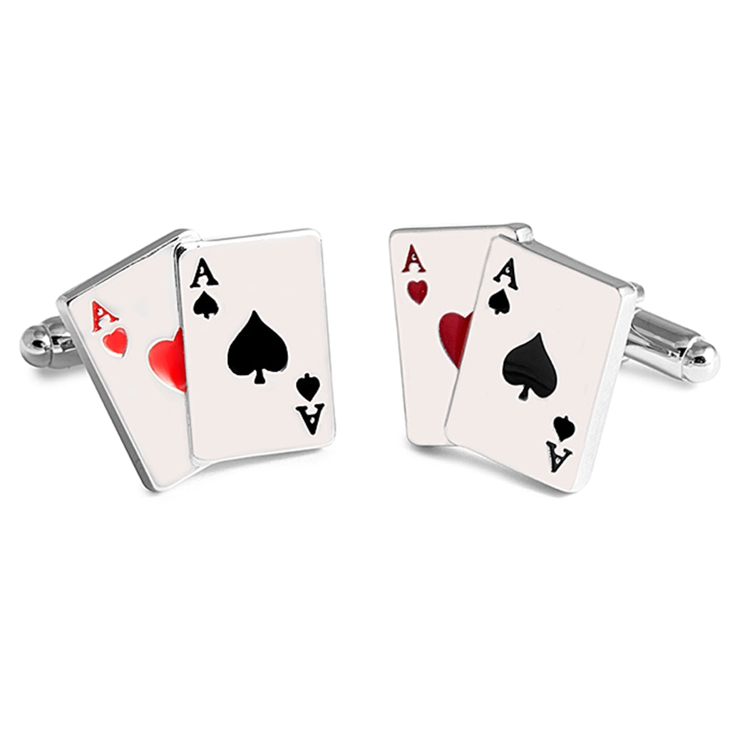 Articolo: gemelli da polso con forma di carte da poker colore argento.