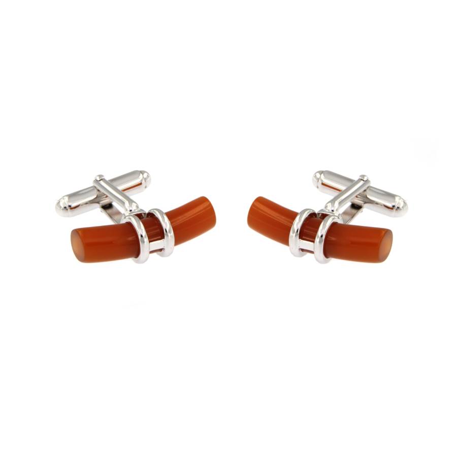 Gemelli in argento 925 con bacchetta in corniola e chiusura a scatto