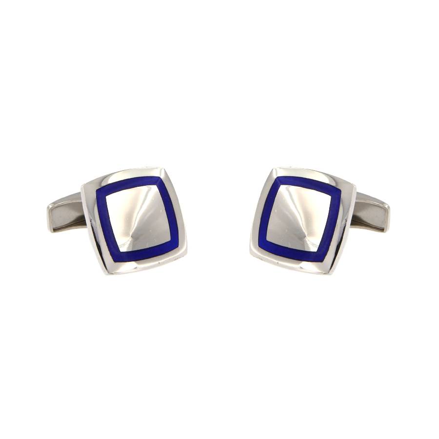 Gemelli in argento 925 con riquadro blu smaltato a fuoco
