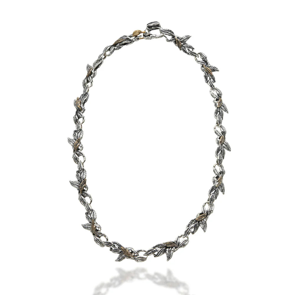 Collier snodato Regina foglie argento 925 e bronzo - CA109