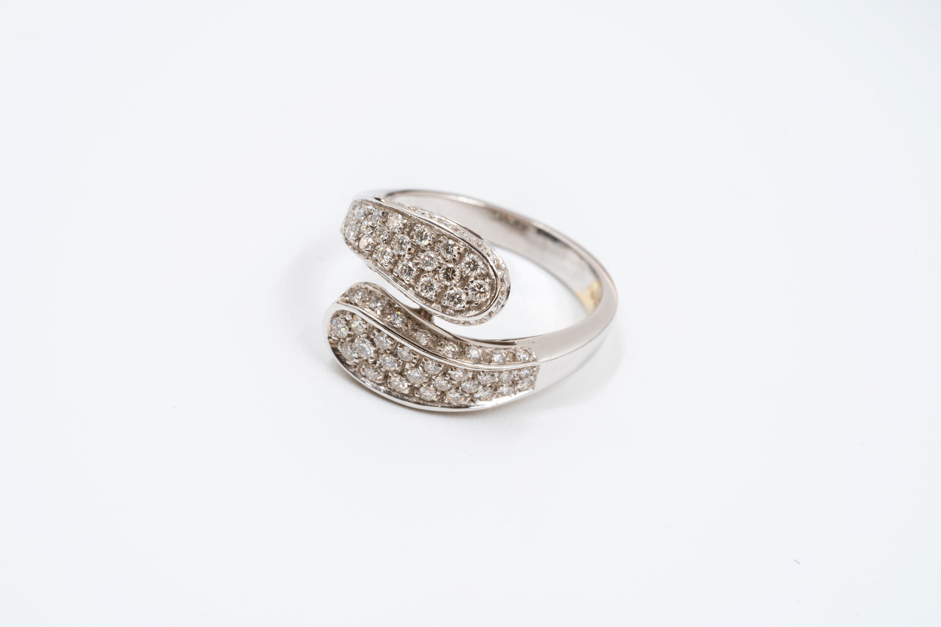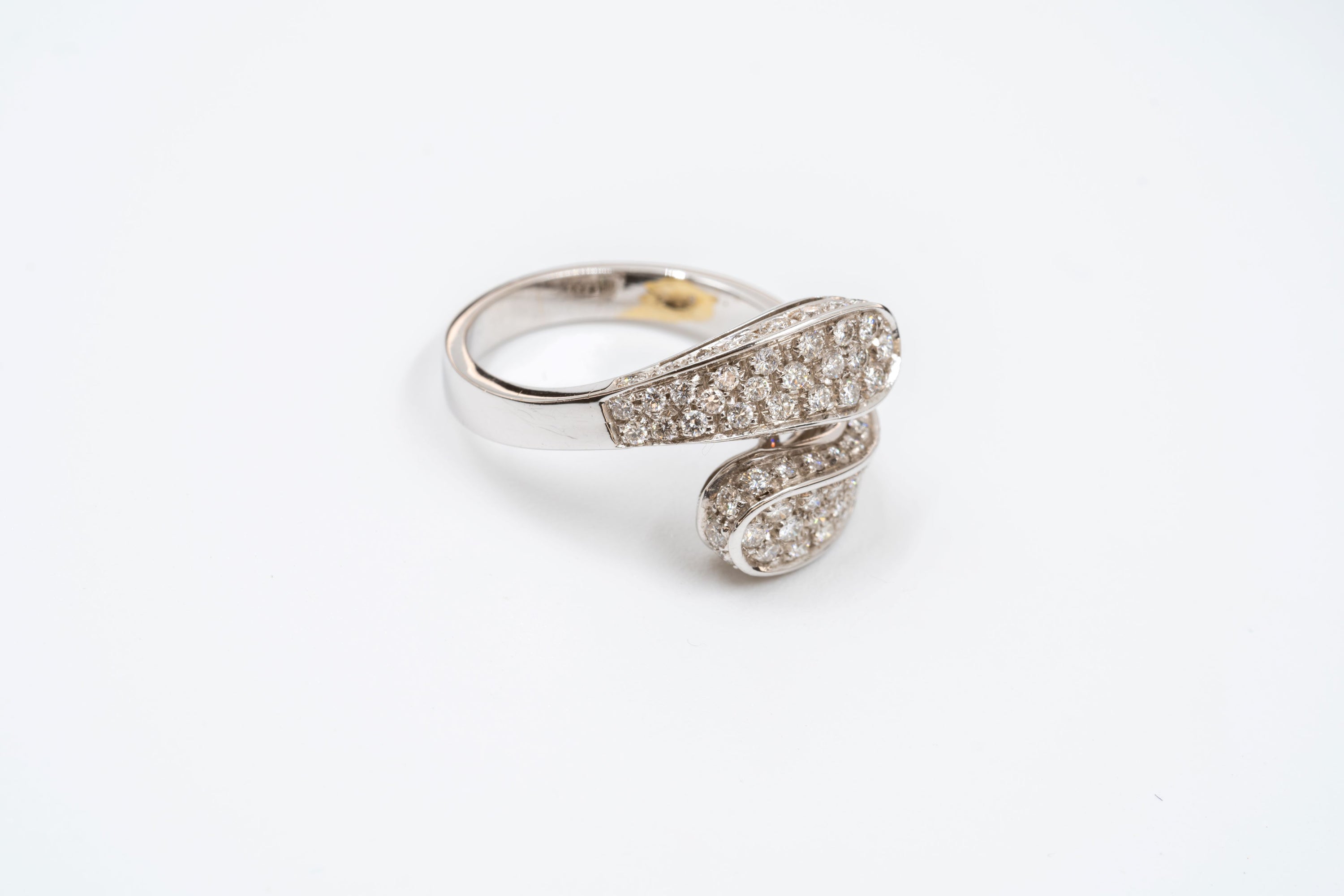 Elegante anello in oro 18kt contrariè con pavé di diamanti