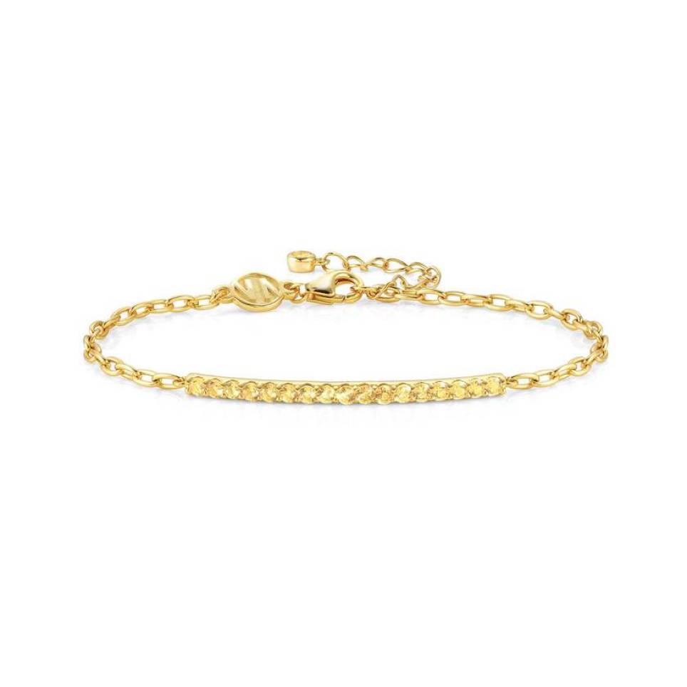 Bracciale in argento 925 dorato e cubic zirconia, lunghezza  regolabile da cm 16,00 a cm 19,00.